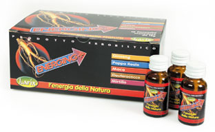 Fructose syrup 9810mg, Honey millefiori 750mg, frozen-dry royal jelly 3:1-300mg, Bilberry dehydrated 300mg, Extract of malt 300mg, Extract of ginseng: titolato in ginsenosidi al 30%-150mg, Maca extract 5:1-150mg, Eleuterococco extract titolato in eleuterosidi sup. al 0,40%-150mg, acido sorbico. Flavour: vanilla.